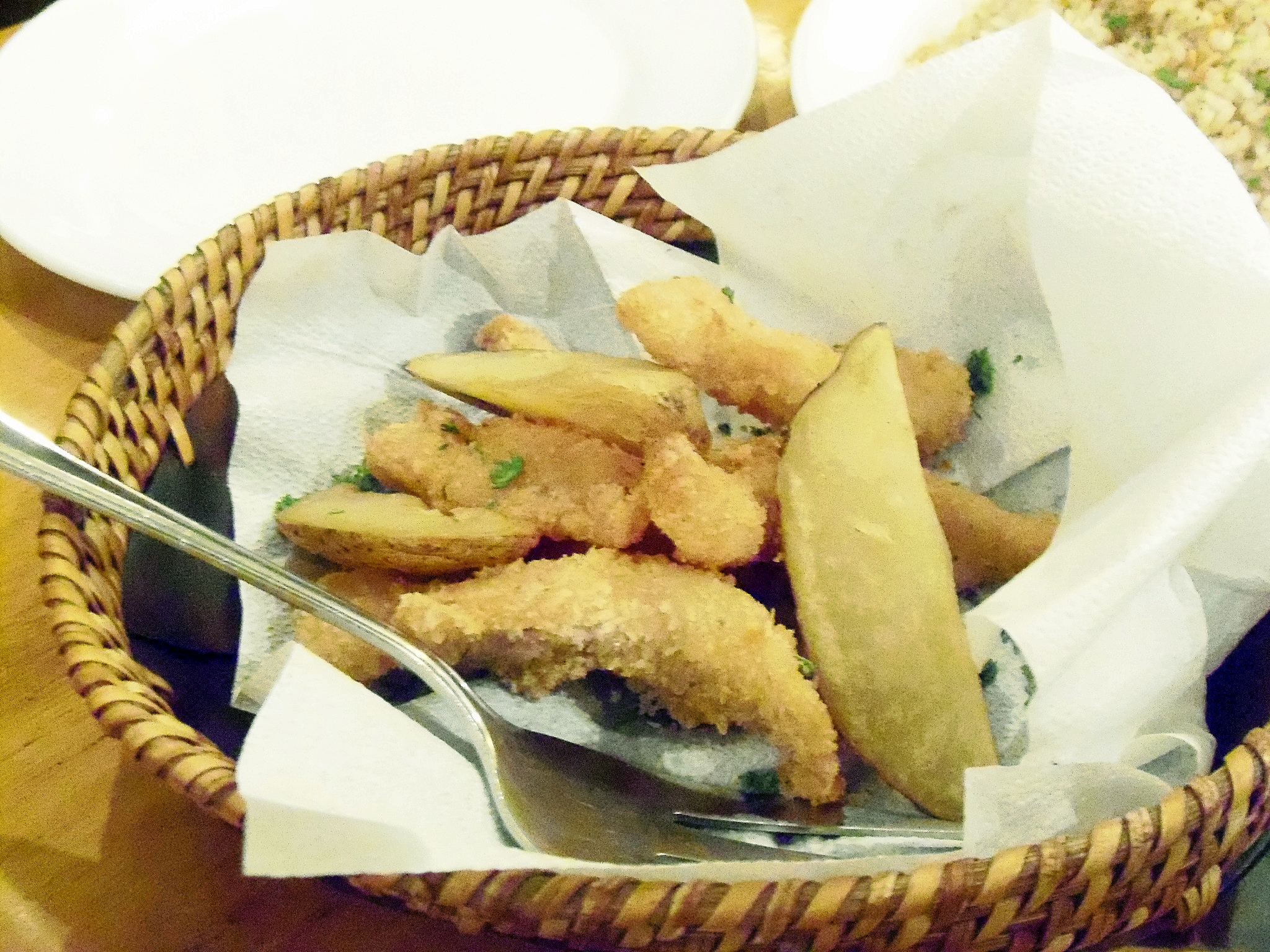 A deep fried fish fillet and a fried potato! 😀