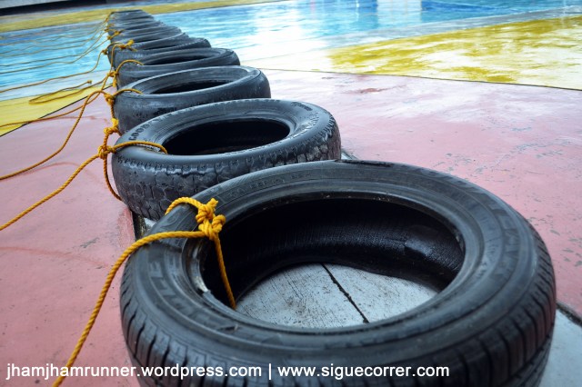 Station 2, Tire Flips – flip tires forward to designated distance. It’s a lower body workout, cool and easy I think about 15 to 20 repetitions I’ve done to finish this station.