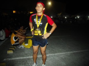 800 meters from the starting line, I was surprised when my left leg stiff and a few minutes “shocks cramps!”. I took time to rest I want to finish the race injury free so I ask for help from the organizers staff and he assisted me immediately ( Thanks to you man! ) After that I did run continuous slower just to reach the finish line because I felt my right leg will going to turn to cramps also.