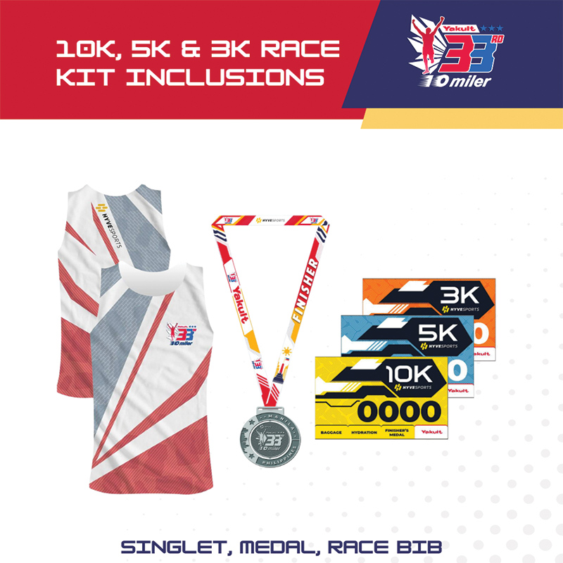 | 16k (10 Miler) | P1,450 | Event Singlet Race Bib with Timing Tag 16K Finisher’s Medal 16K Finisher’s Shirt Fanny Pack | Assembly: 4:00 AM Gun Start: 4:30 AM Cut-off Time: 7:00 AM |