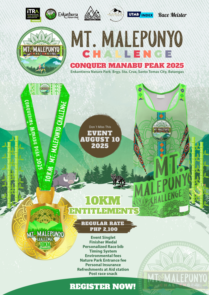 After the success of the Sta. Cruz Trail Quest in 2024, we’re thrilled to invite you to our next adrenaline-pumping event: Mt. Malepunyo Challenge: Conquering Manabu Peak! The event will take place at Enkantierra Nature Park in Sto. Tomas, Batangas, on August 10, 2025.